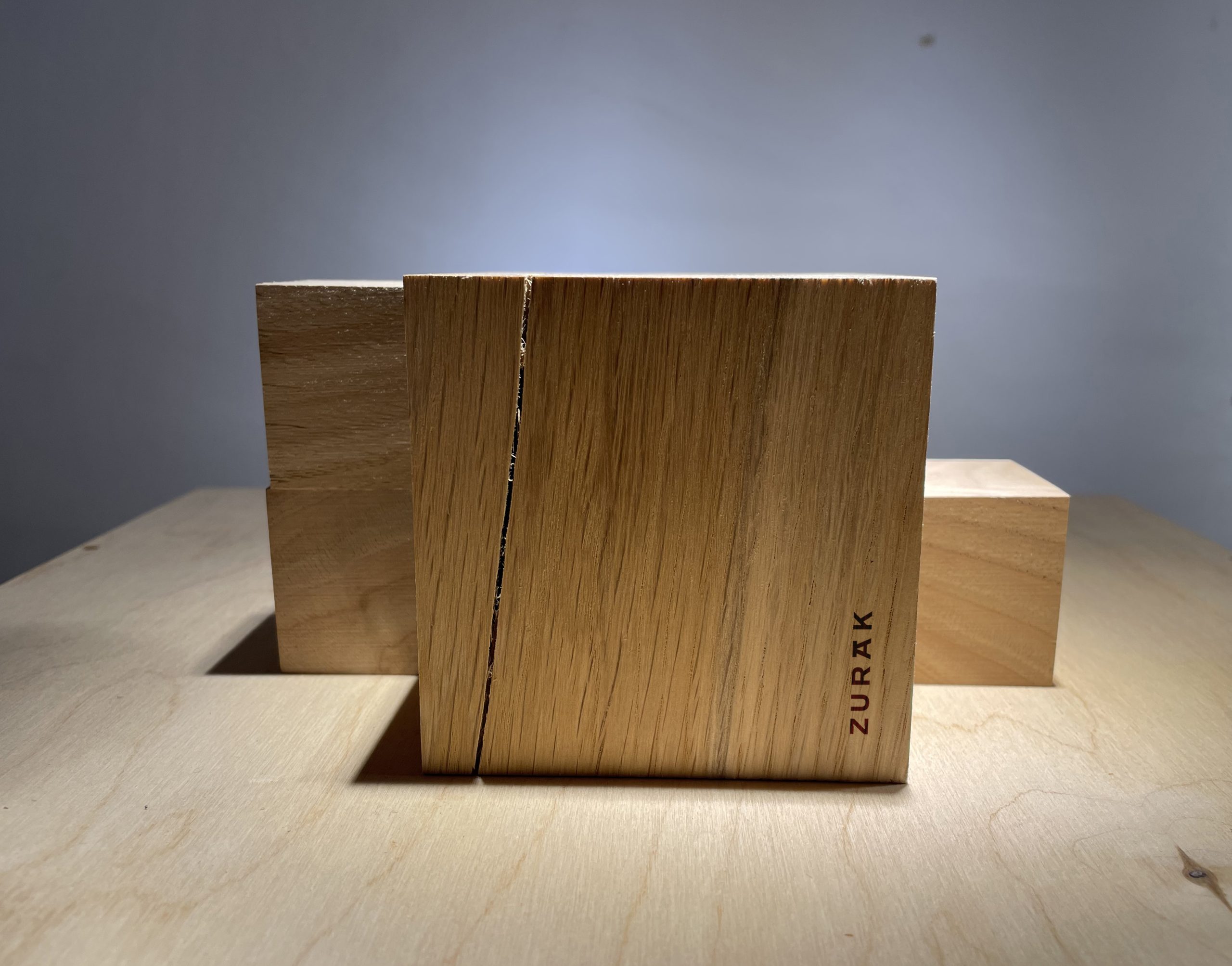 ZURAK-en laminak eskuz eta banan banan egiten dira. Horretarako ZURAK-eko piezak erabiltzen dira, beti Euskal Herrian landatze iraunkorretan hazitako egurrak edo bertoko eraikin zaharretatik berreskuratutak. Nondik datorren ere jakingo duzu, arte proiektu honen ezaugarrietako bat egurraren jatorriaren trazabilitatea ezagutzean datza.